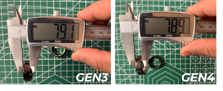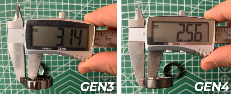 - Tloušťka nejtlustší části prstenu (u Gen3 měřeno v místě "bubliny") je u Gen4 menší.