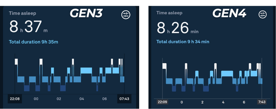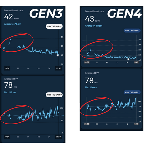 Jak jsem nastiňoval v papírovém srovnání generací, Oura hovoří o tom, že GEN4 díky přesnějšímu měření a lepšímu "smart sensing" algoritmu eliminuje "gapy", tedy mezery v měření - např. tepovky.