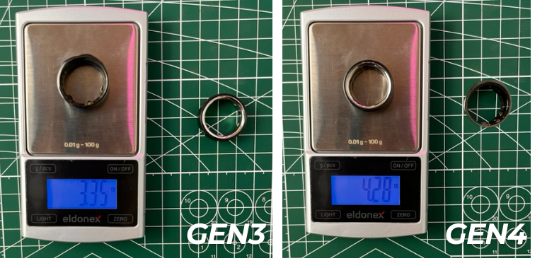 - Oura Gen4 je díky celotitanovému tělu těžší.