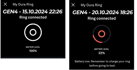 To znamená 5 dní. Což považuji za velký rozdíl oproti marketingově proklamovaným "up to 8 days". Možná, že Oura píše někde pod čarou, že pro tuto hodnotu je nutné vypnout snímání SpO2 a zapnout letadlo... Anebo, že se k této hodnotě přiblíží v budoucnu (více nabíjecími cykly, vývoje fw, kdo ví?).