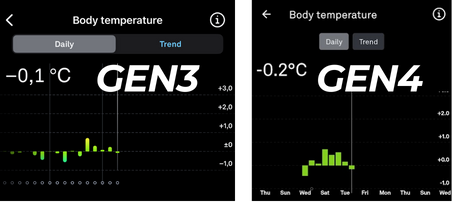 Skutečně jsem v teplotě zaznamenal rozdílnosti - ale je možné, že důvodem je pouze nedostatečně ustanovená baseline u GEN4 (kvůli krátké době užívání).