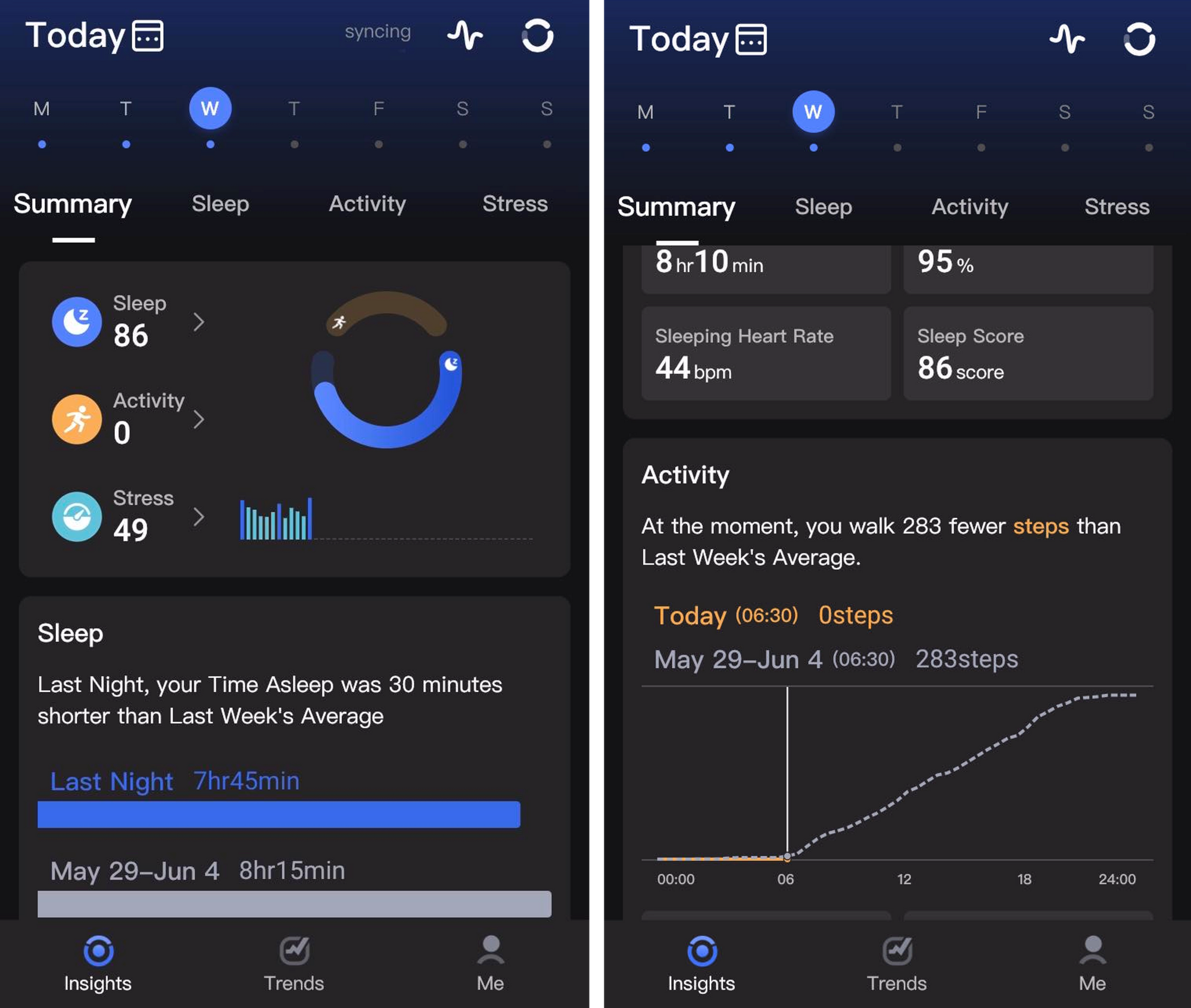 RingConn aktuálně nemá metriku podobnou Readiness/Recovery a musíte se tak spokojit pouze se skóre spánku z předchozího dne, což v mém případě bylo 86.