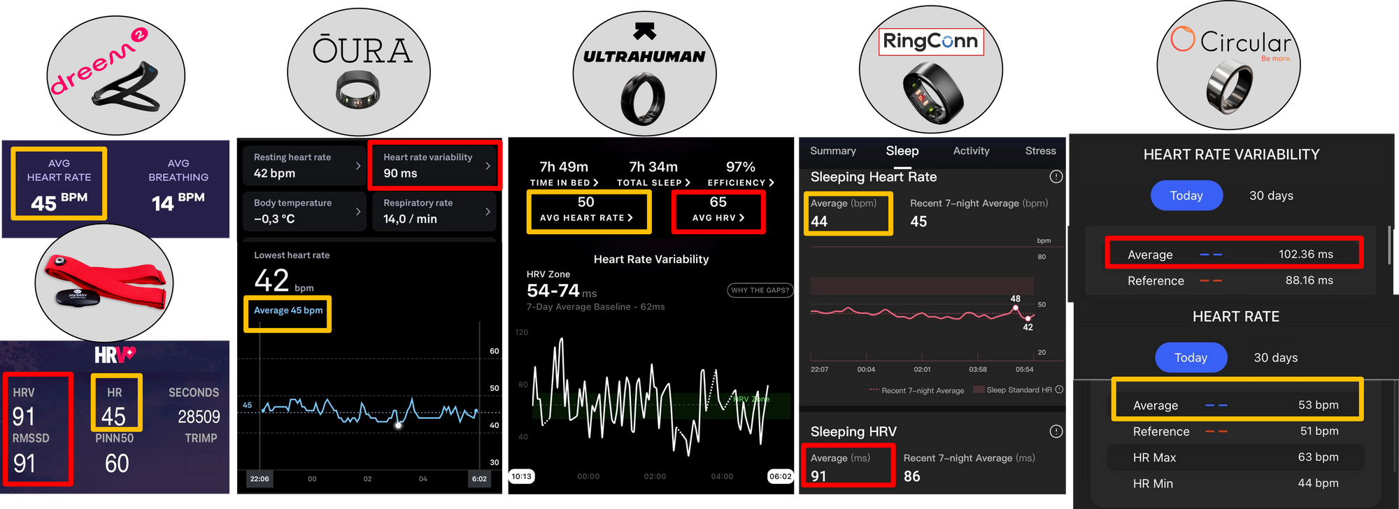 - Circular - HR 53 bpm, HRV 102 ms