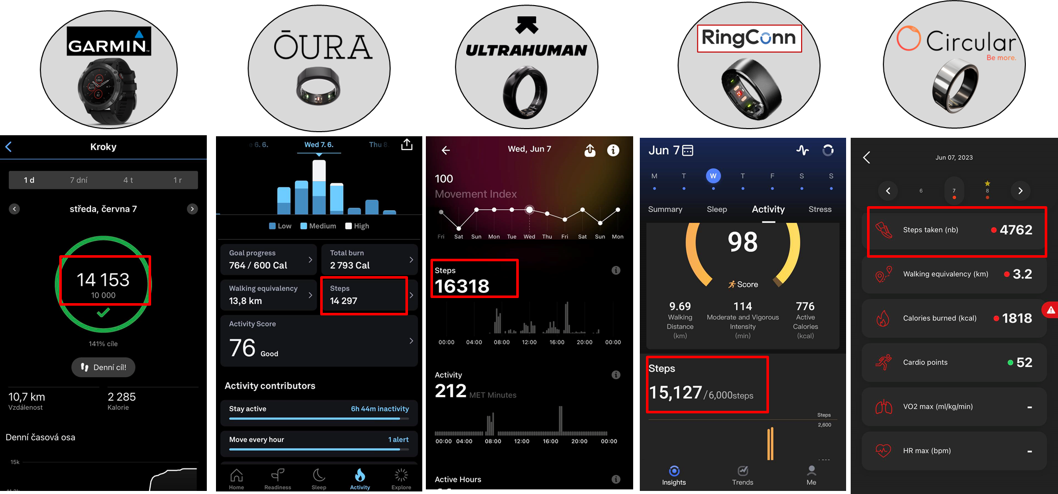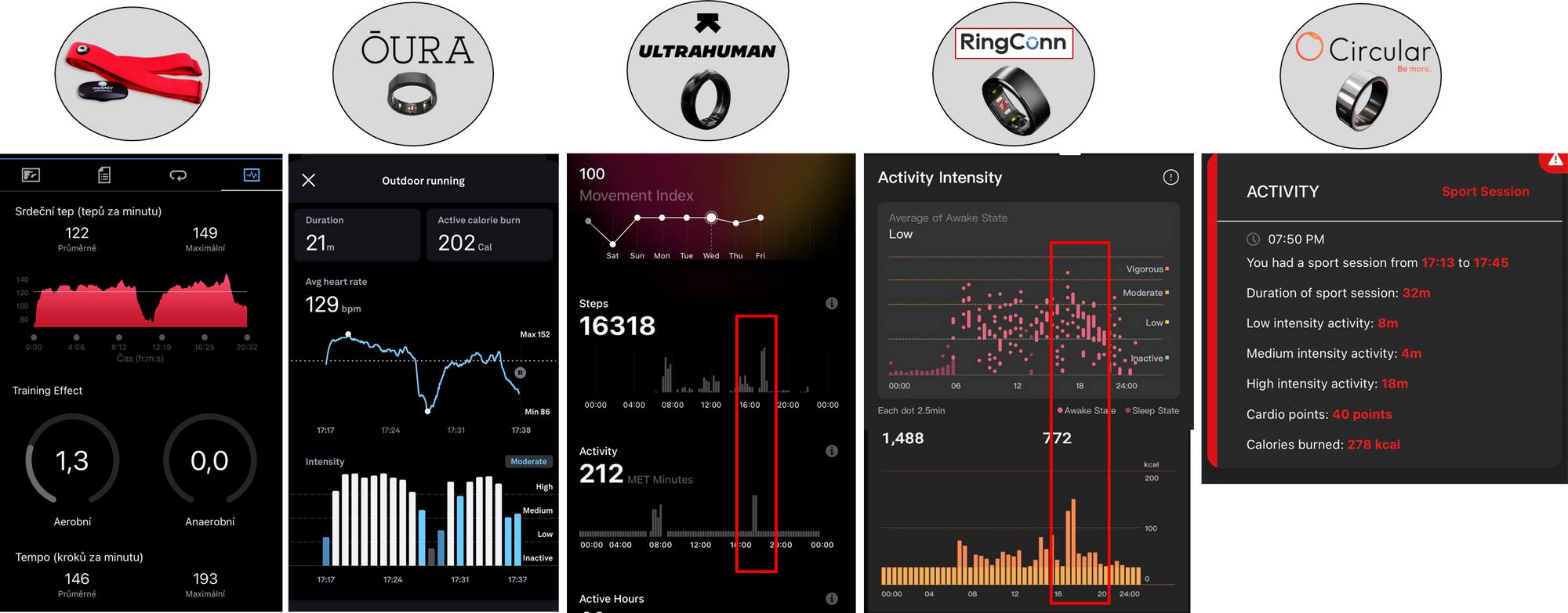- Jeden den a jeden uživatel samozřejmě neposkytnou komplexní srovnání, ale věřím, že jistý obrázek o tom, jak prsteny fungují & jaká data poskytují, dají.