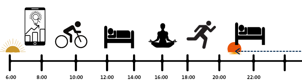 Jedna ze zajímavých funkcionalit Ultrahuman aplikace je časovač, který dynamicky notifikuje v záhlaví aplikace časové okno pro daný úsek dne z hlediska cirkadiánního cyklu, ráno tedy doporučuje brzkou expozici sluneční světlem.