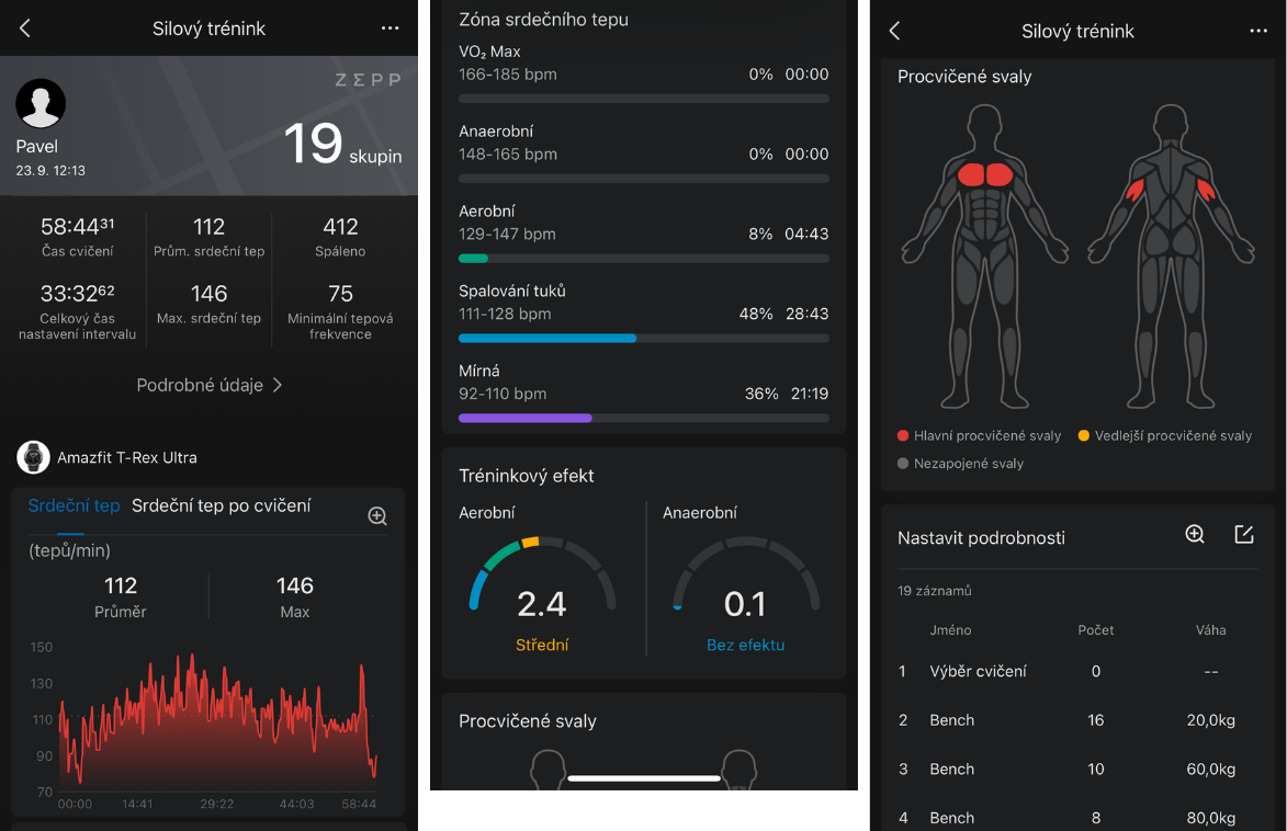 Naproti tomu hodinky při silovém tréninku nepřekáží a navíc můžete benefitovat ze záznamu cvičení, případně využít digitálního záznamníčku pro cviky a váhy: