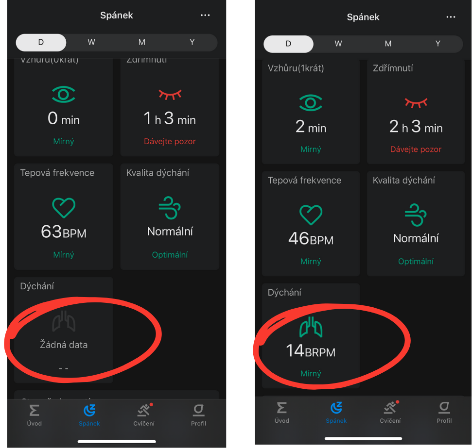 Zároveň, s využitím kombinace prstenu a hodinek aktuálně dostanete při spánku i údaj o Frekvenci dýchání.