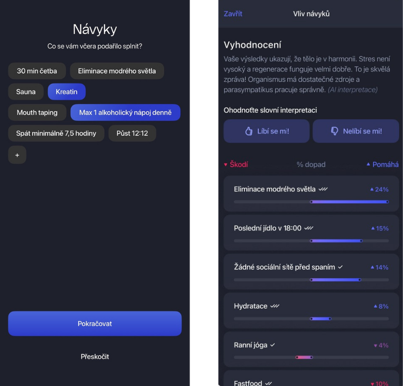 Pokud používáte nějakou nositelniku (chytrý prsten, hodinky, náramek), možná to znáte. Večer se protáhne, dáte si k večeři něco těžšího (pizzu, burger, pořádnou tortillu) a jdete rovnou spát. Anebo jinak, dáte pozdní trénink, fotbálek v 8 večer s partou, protože jindy nebyla tělocvična volná.