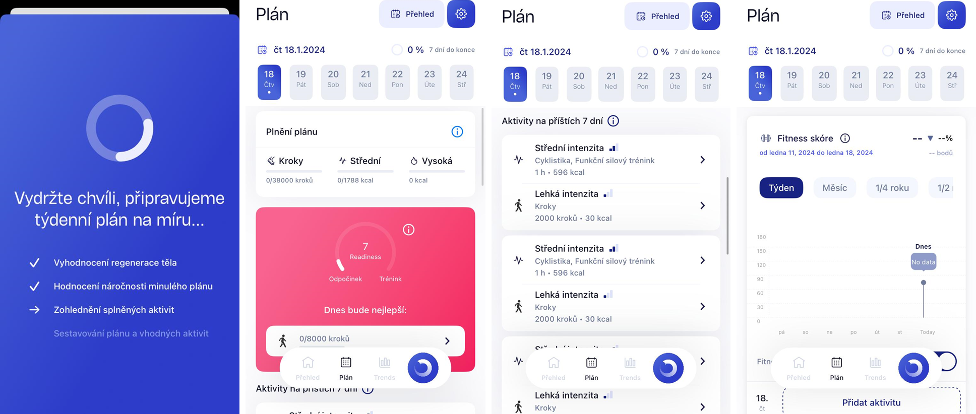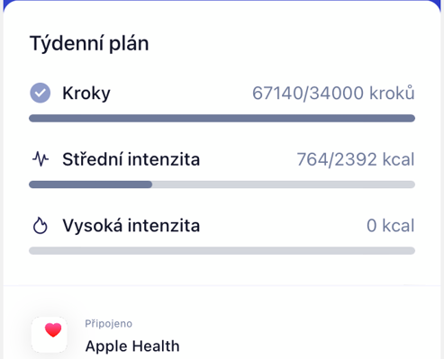 Plnění plánu, tj. jaké aktivity jste absolvovali - probíhá manuálně nebo synchronizací s Google Fit / Apple Health.