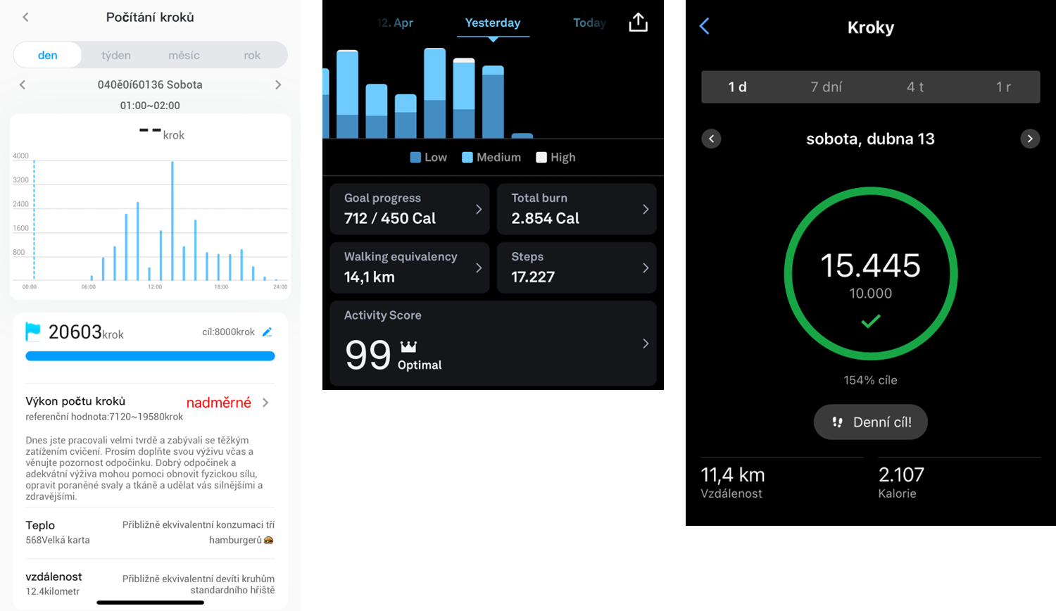 - základní data - kroky, kalorie,