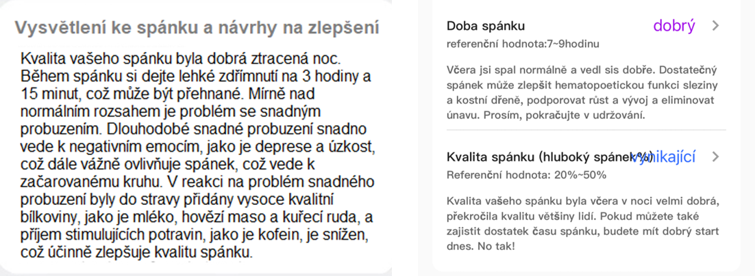 - Doporučení - prodejce na svém webu tvrdí, že aplikace dává nějaká doporučení, například ke spánku. Řekněme, že je tam jistý pokus o vysvětlení některých pojmů a edukaci. Ale minimálně v rámci překladu to působí dost obecně a mnohdy i komicky. Pokud se mě ptáte, co je kuřecí ruda, upřímně netuším.