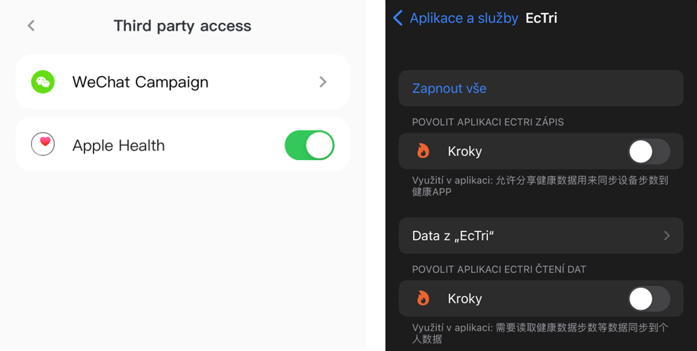 - Konektivita - EQ R3 dovede synchronizovat data s iOS Health, jde ale pouze o kroky: