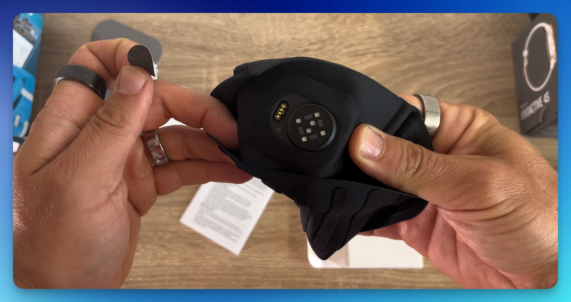 Když si však uvědomíme, co se v krabičce Index Sleep Monitor skrývá, divit se nemusíme. Jde vlastně o nylonovou, poměrně širokou, manžetu s vnitřní kapsou. Můžeme jej také nazvat textilním páskem na ruku.