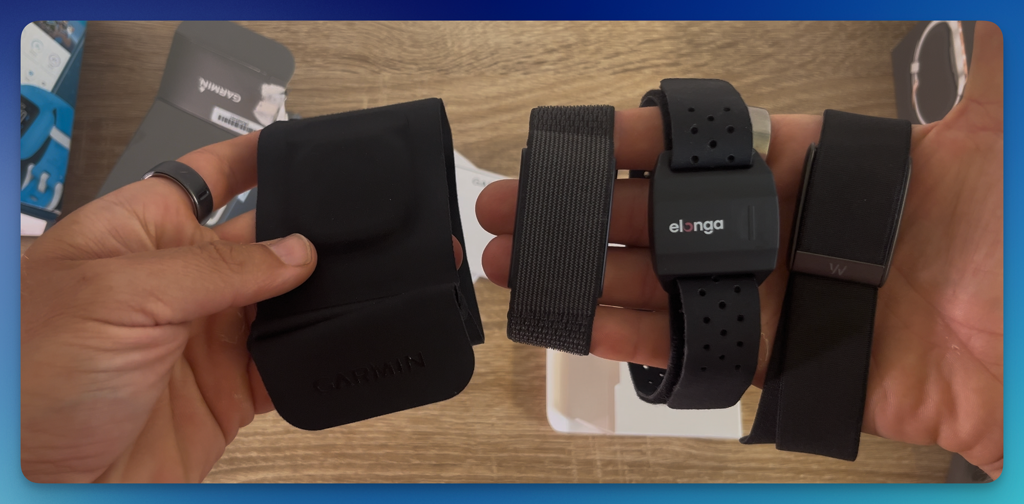 Tenhle koncept je vlastně důmyslný (lze jednoduše vyjmout ryzí HW a vyprat látkovou manžetu) a také, ne-nepodobný např. Whoop Arm Sleeve.