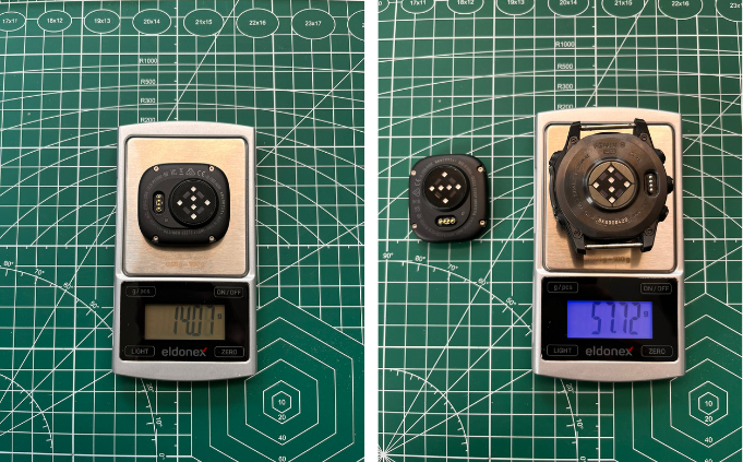 Senzor Sleep Index Monitoru váží 14 g (samotný textilní pásek pak 16 g, resp 20 g pro velikost L/X). Pro srovnání, Garmin Fenix 8 váží 57 g.