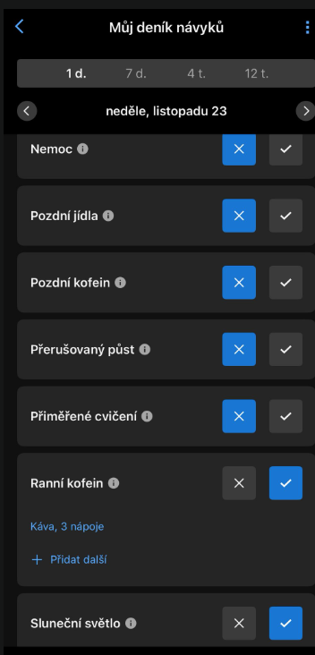 Takhle jednoduše mohu sledovat, jaké návyky a jakým způsobem ovlivňují moji biologickou regeneraci.