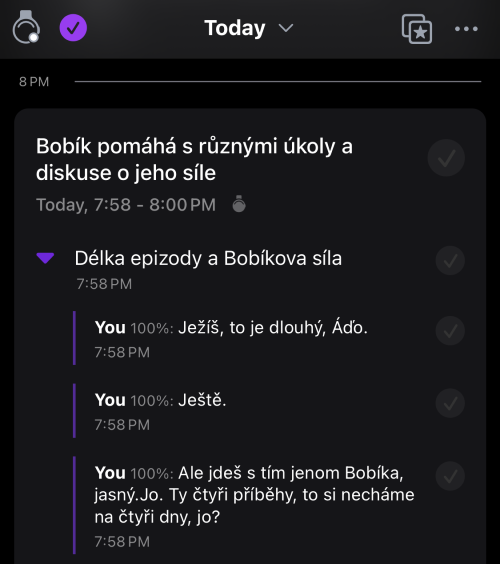 - ⏬ V rámci jednoho dne appka dělá množství "summary" (tématických bloků).