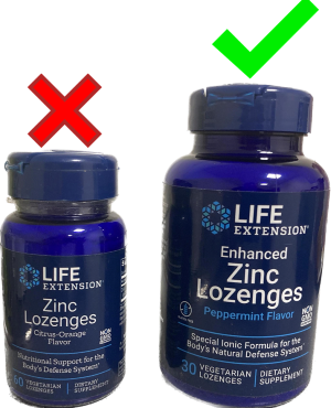 Takový produkt je na trhu stále zřejmě jen jeden - Enhanced Zinc Lozenges od Life Extensions. Pozor, najdete i variantu bez "Enhanced", jednou se mi ji "povedlo" zakoupit, takže mohu poskytnout srovnání balení: