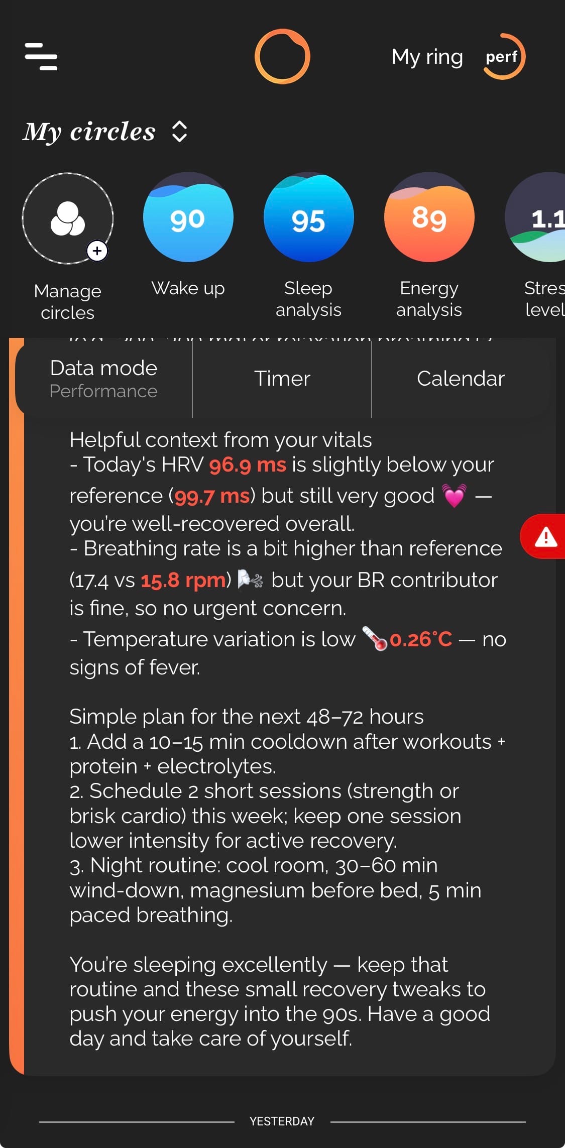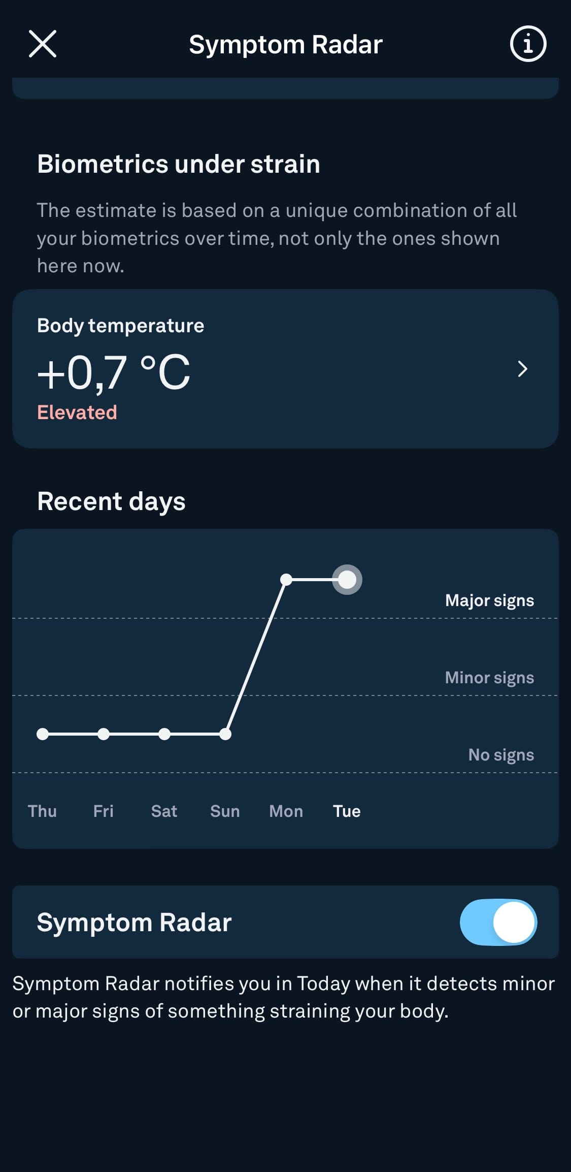 Všechny tři zmíněné nástroje nejsou něčím, co bych pravidelně aktivně využíval. Nicméně jde o funkcionality, které najdou svoje využití. Oura vám obecně leccos poradí, dokonce je schopna se podívat do tagů pro kontext. Funkcionalitu Oura Meals považuji za užitečnou a unikátní zejména v tom ohledu, že akcentuje přímo nutriční obsah, (ultra)zpracovanost, nikoliv množství kalorií. Symptom radar podle mě funguje jako nejlepší prediktor nemoci a přetížení na poli nositelniky.