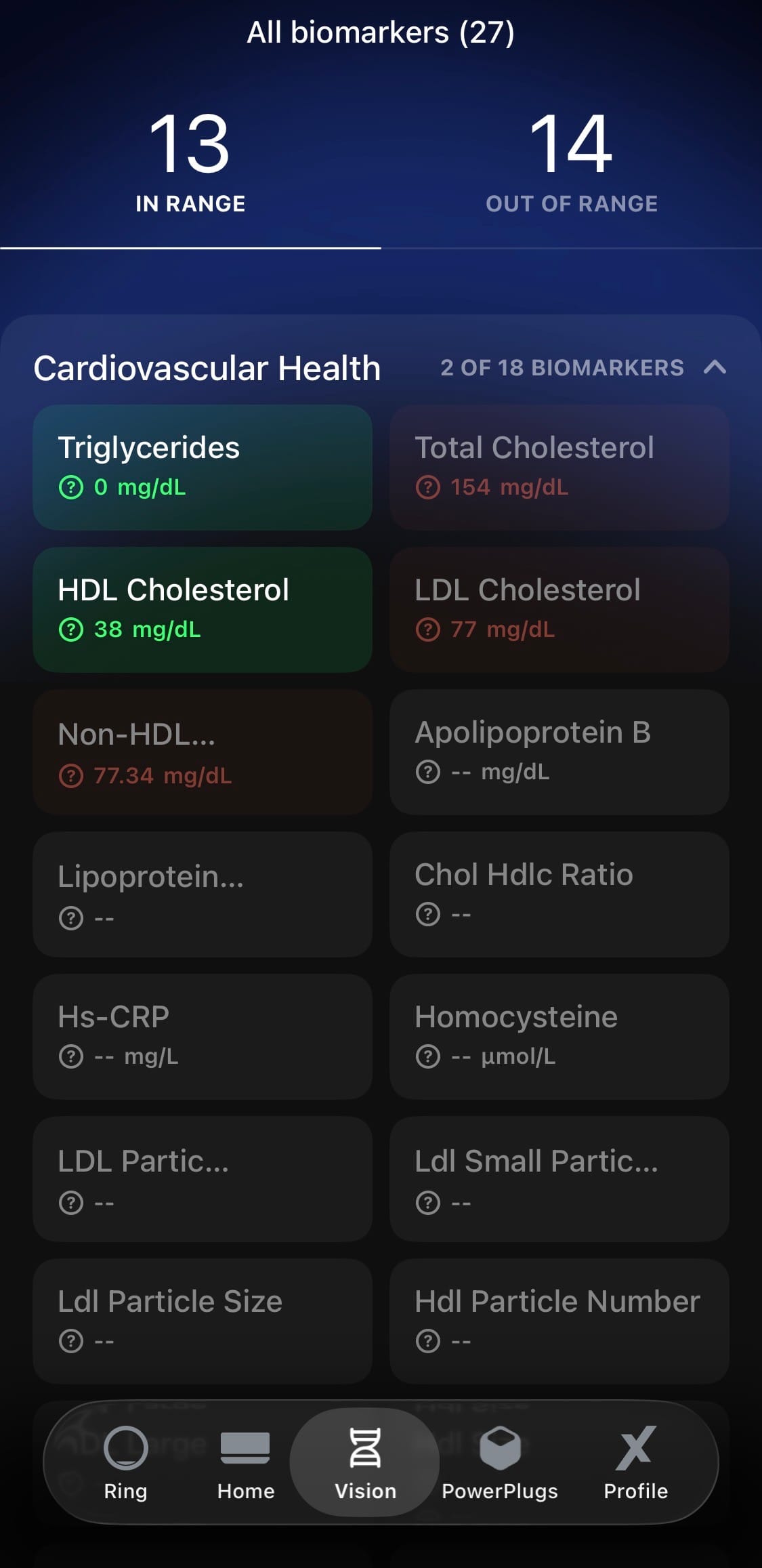 Oura také, stejně jako Whoop a Ultrahuman rozjíždí propojení s krevními testy, Oura to nazývá Health Panels. Aktuálně nedostupné v EU.