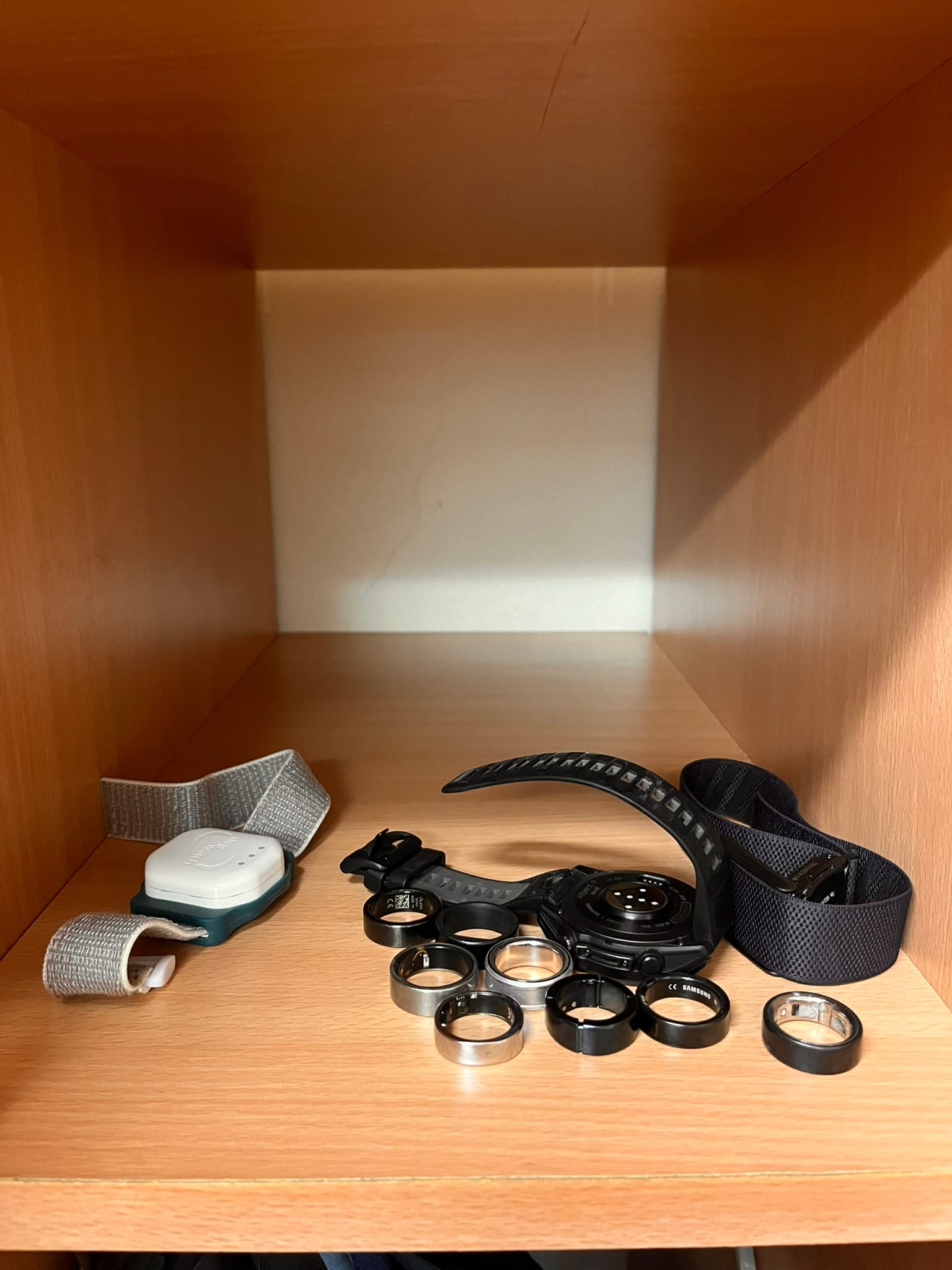 Více jak celý týden jsem nosil StepWatch 5 na levé noze, zatímco na zápěstí, bicepsu a hlavně prstech jsem nosil celou armádu nositelné elektroniky. Konkrétně tato zařízení: