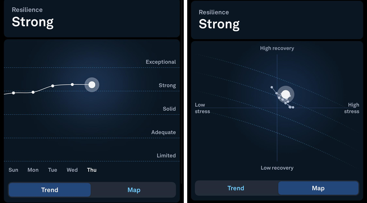 Funkce "Oura Resilience" umožňuje uživatelům sledovat jejich denní stres a regeneraci a monitorovat, jak tato rovnováha ⚖️ ovlivňuje jejich odolnost vůči stresu v čase.