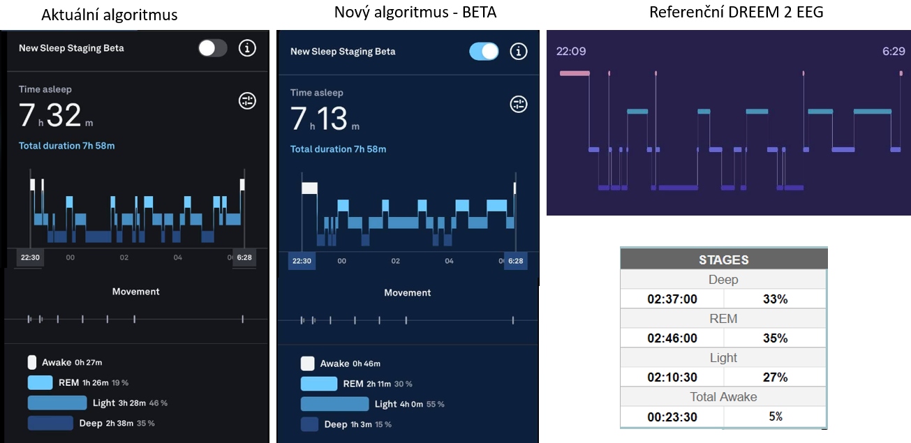 Nový spánkový algoritmus byl dlouho očekávaným, neboť sliboval razantní zlepšení přesnosti odhadu spánkových fází, konkrétně Oura hovoří v tomto duchu: