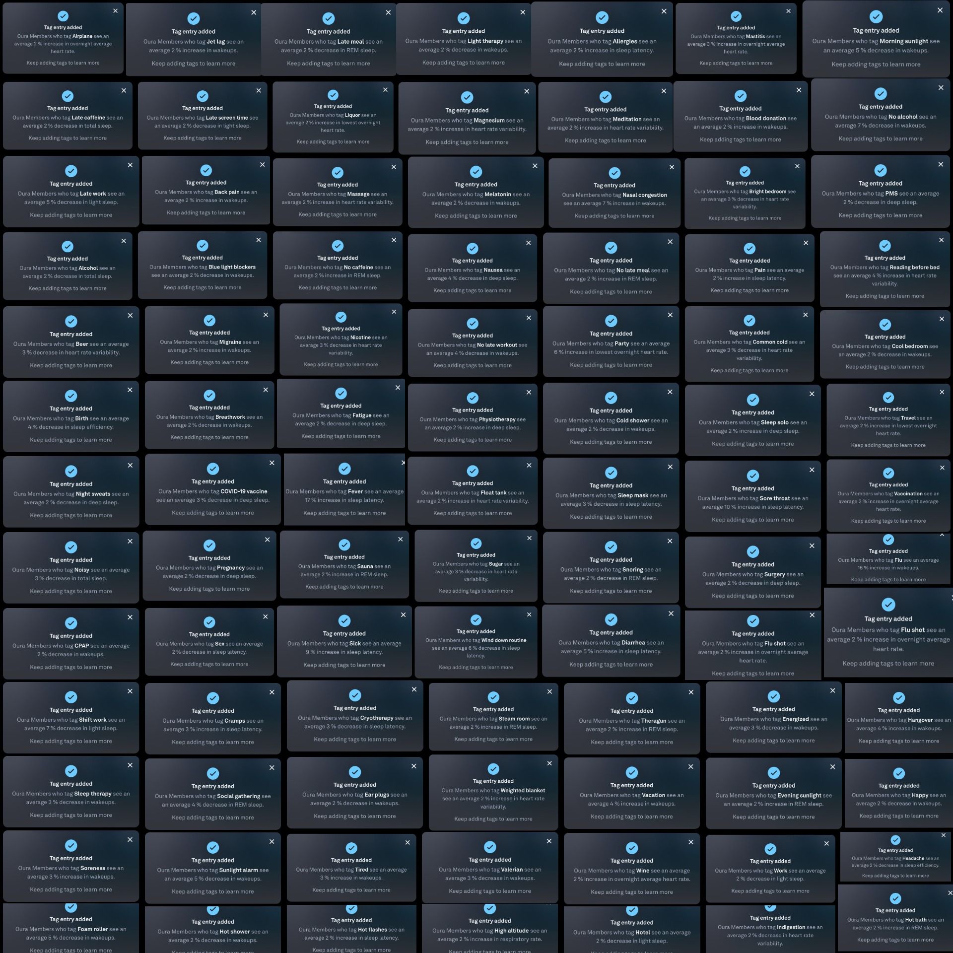 Tagy jsou dlouholetá funkcionalita Oura prstenu, která potřebuje výraznější update. Pro připomenutí, jde o štítky, které můžete přidat k danému dni, což se zobrazí primárně v trendech (v aplikaci, i v rámci cloudového zobrazení).