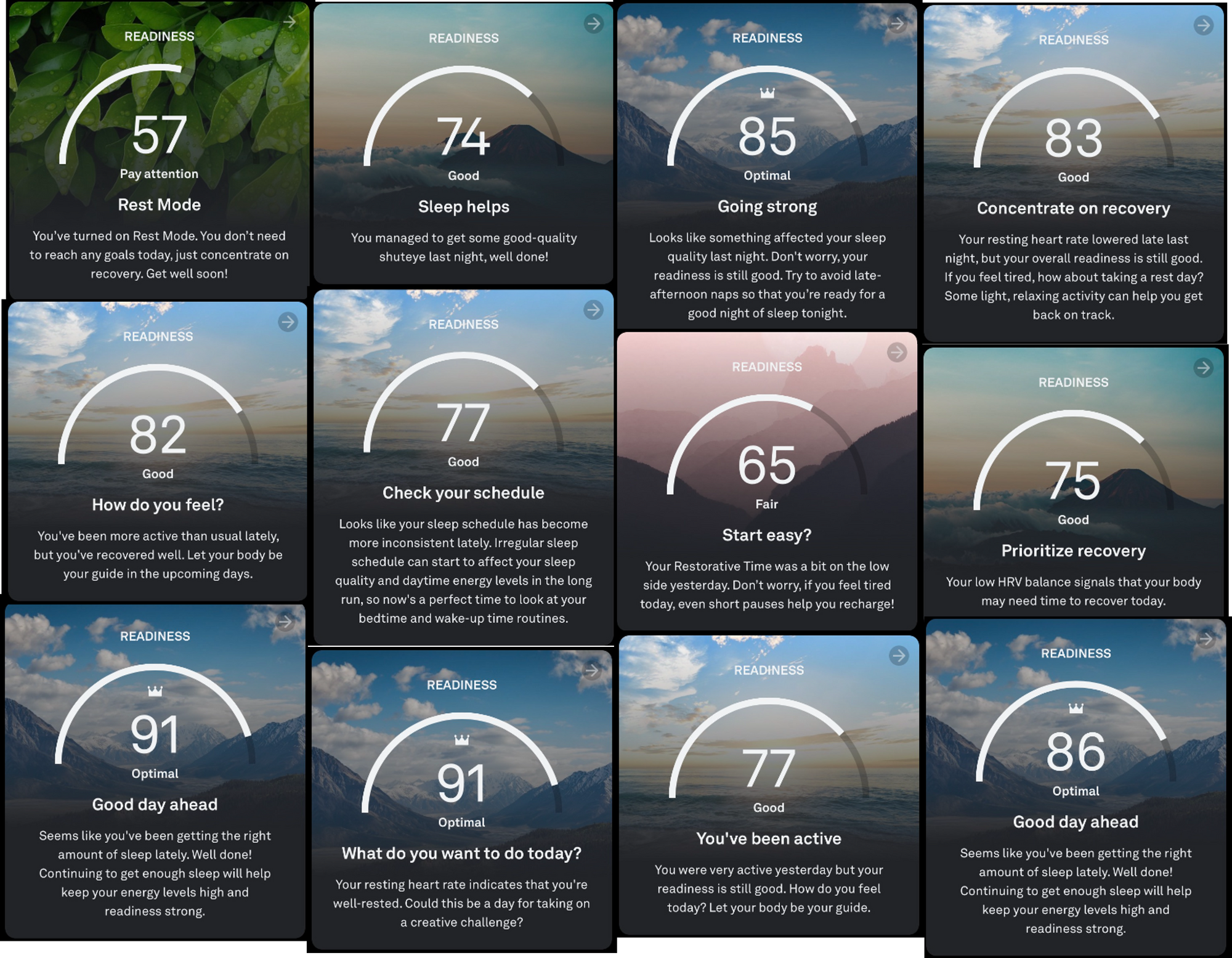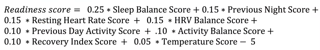 Je dobré ale mít na paměti, že Readiness je jen "uměle" vyprodukované číslo na základě výpočtu (dekódováno od QS Rob, viz níže) do něhož vstupují primárně jiná, také vykalkulovaná čísla - skóre z oblastí spánku, aktivit a stresu.