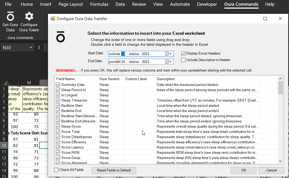 - API - velké spektrum aplikací je schopno si extrahovat data z Oury (využívám např. Exist), což se dá využít k agregaci dalších dat, z jiných zdrojů. Poměrně zajímavou alternativou pro vlastní práci s daty muže být i tabulkový král MS Excel. Pro něj existuje rozšíření, které vám natáhne surová data přes API přímo do Excelu. Více zde.