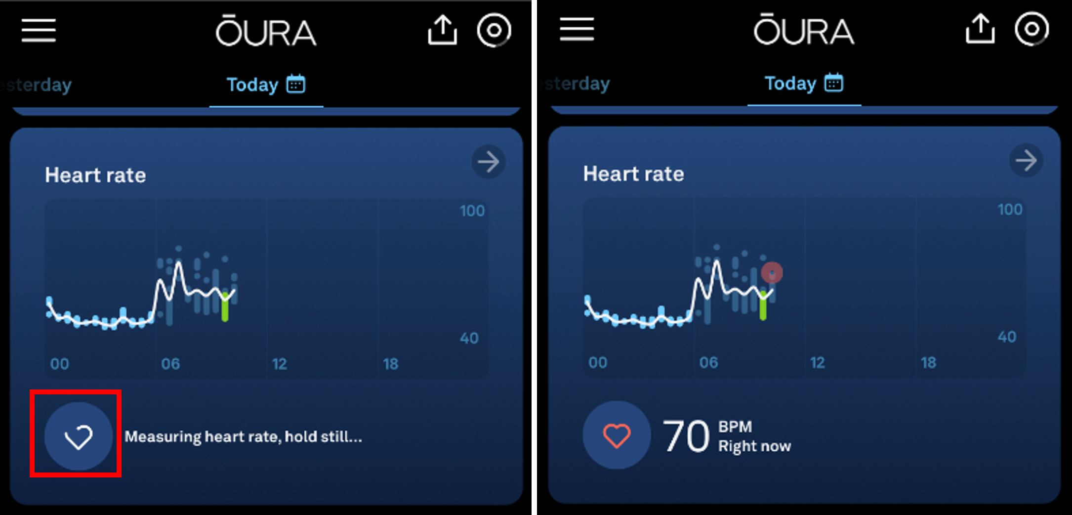 Oura nedisponuje nyní (na rozdíl od např. Circular a RingConn) živým měřením (jistou alternativou mohou být "sessions" v rámci záložky Explore).