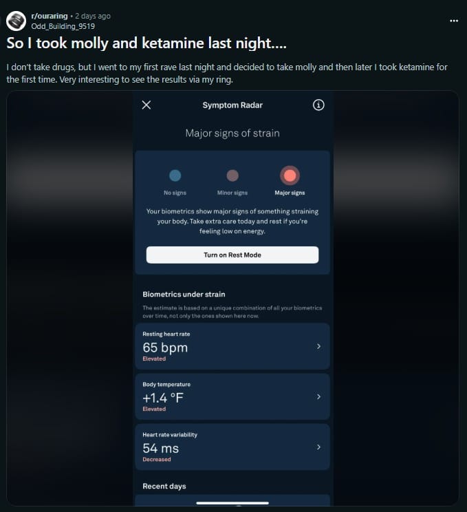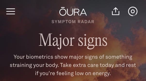 Nedávno se mi Major příznaky vyjevily v aplikaci Oura znovu.
