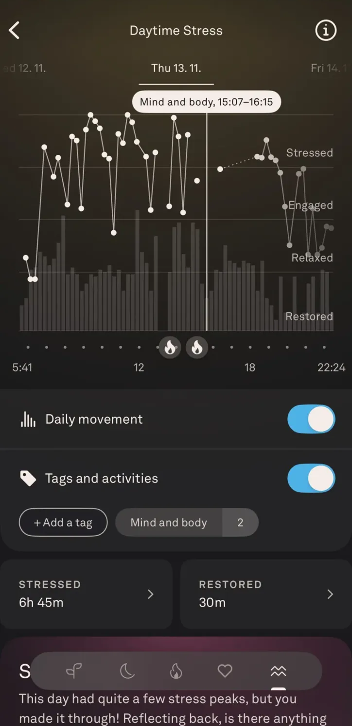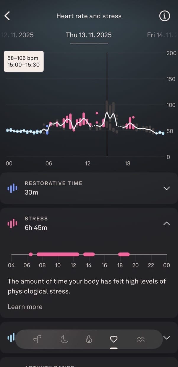 Tady se můžeme odrazit od Oura dokumentace: "Stres může být vyvolán cvičením, socializací nebo saunou. Vaše tělo nerozlišuje mezi fyziologickými a psychologickými stresory."