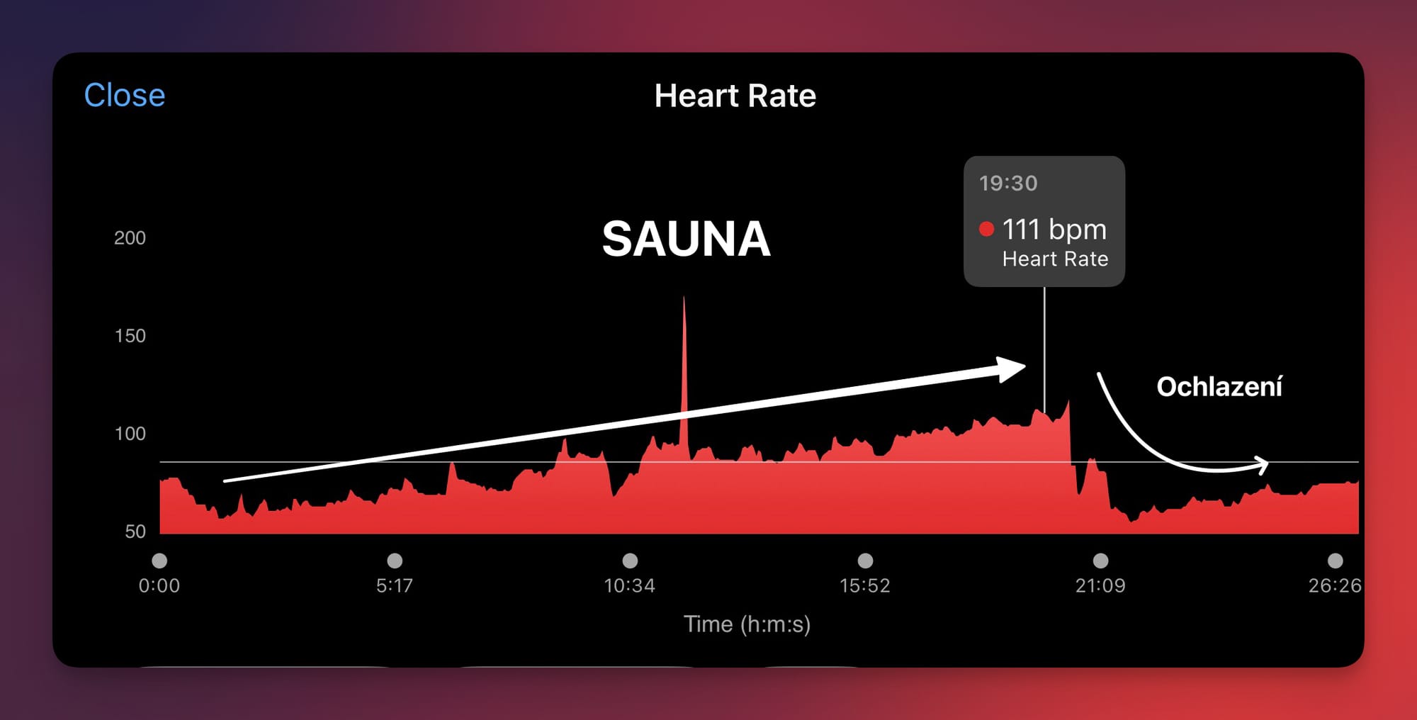Celý tento článek mohla celkem spolehlivě napsat AI. Co však AI nemůže, je nasadit si nositelniku a vychutnat si saunu. Bylo to báječné. A co jsme naměřili?