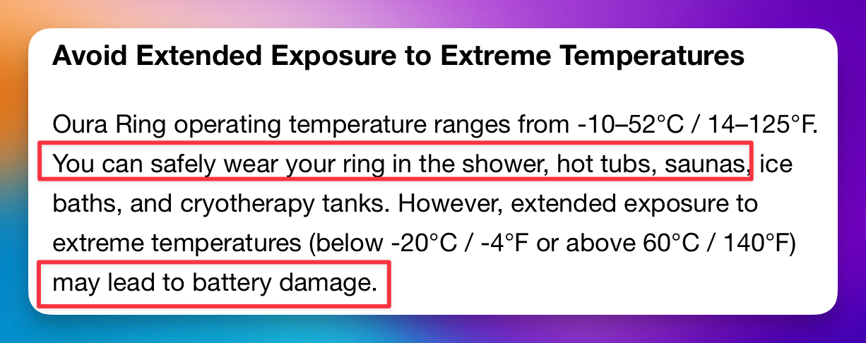 - Oura si malinko protiřečí – můžete s ním do sauny, nicméně varuje před teplotami nad 60 °C