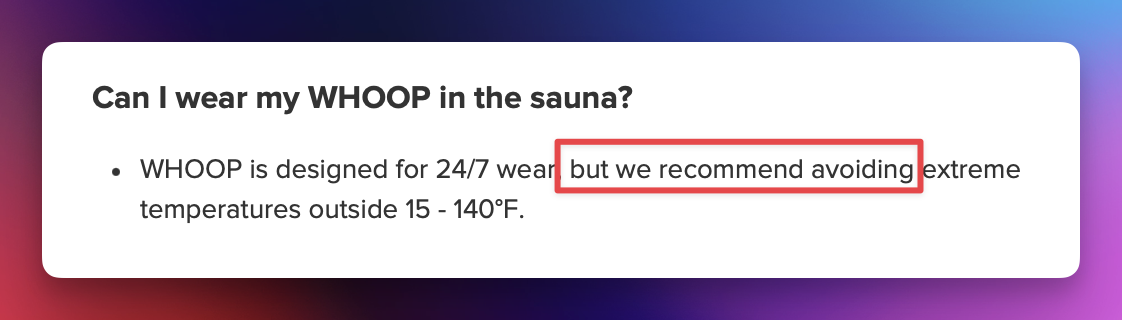 - WHOOP obdobně jako Oura doporučuje vyhnout se prodlouženému vystavení extrémnímu teplu.