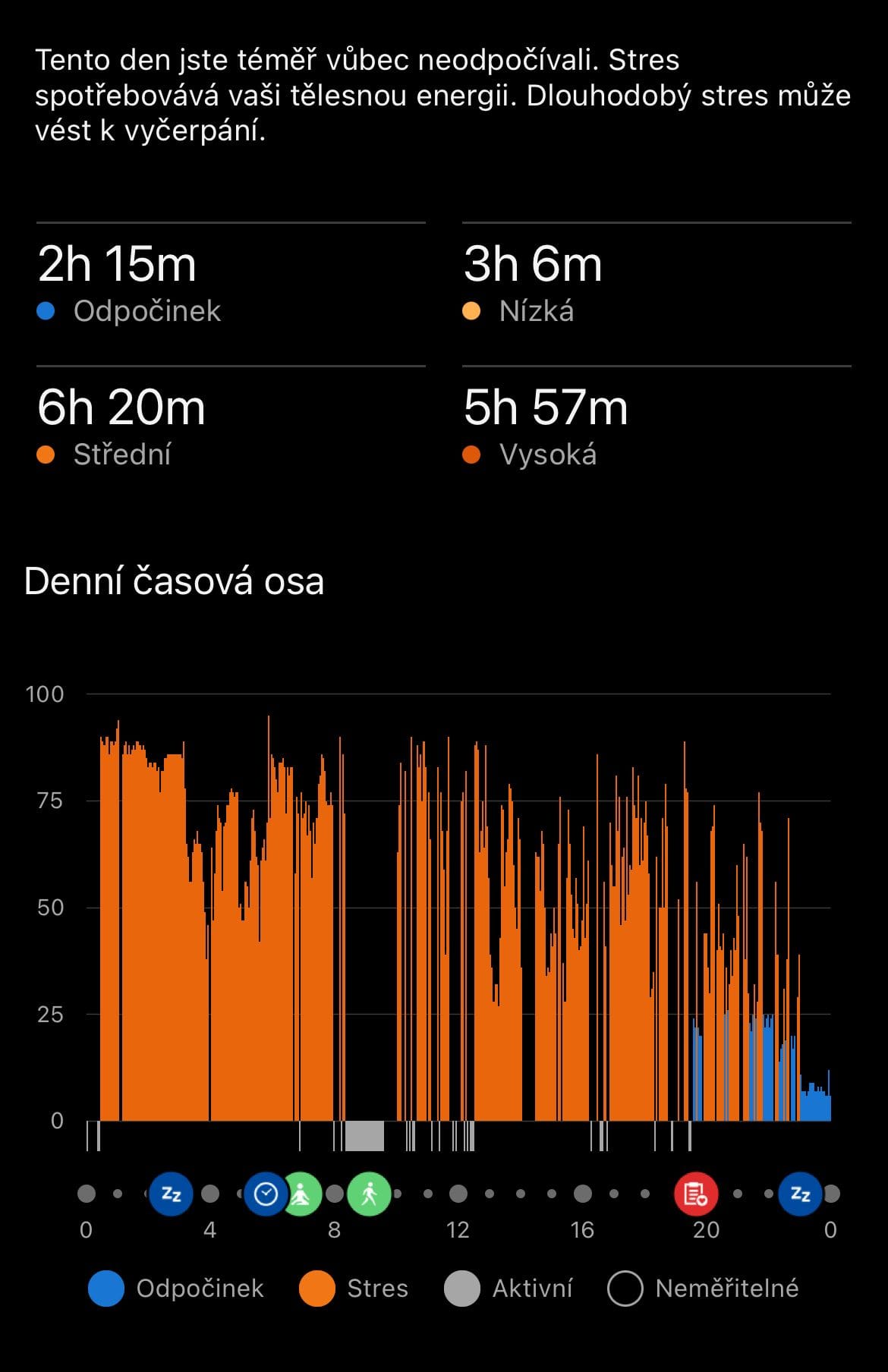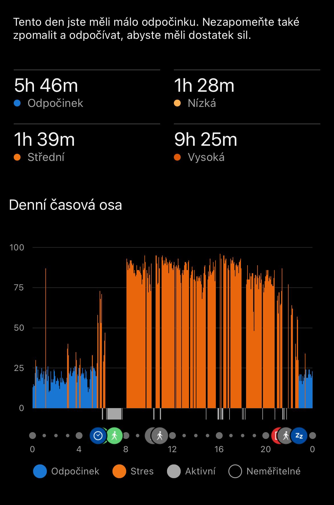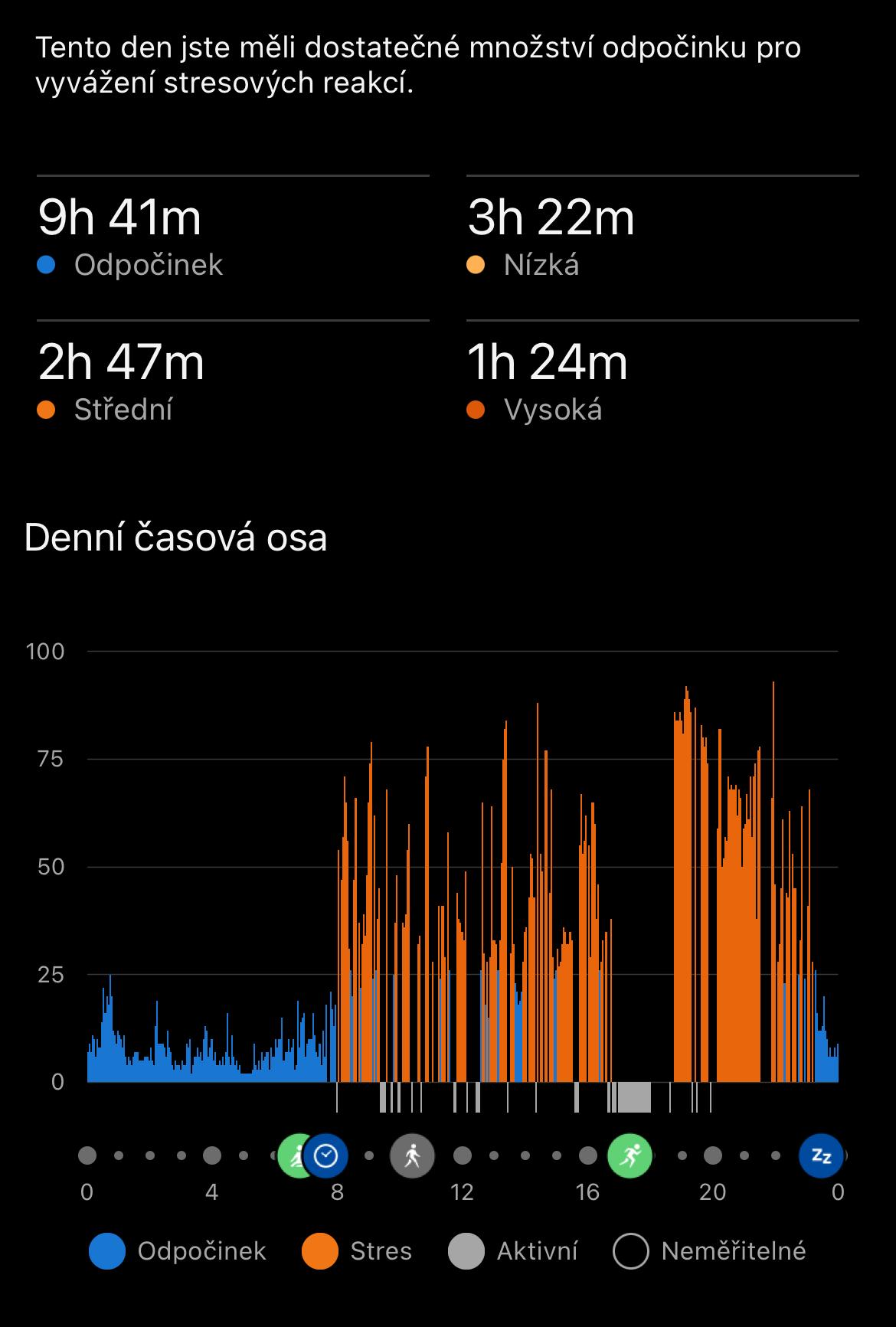 Vidět to takhle černé na bílém s člověkem trochu zamává. Znám lidi, co to řeší tak, že si radši vypnou tep, aby je hodinky neotravovaly se stresovými událostmi, když jdou na "na jedno" (nebo si hodinky radši vůbec neberou...).
