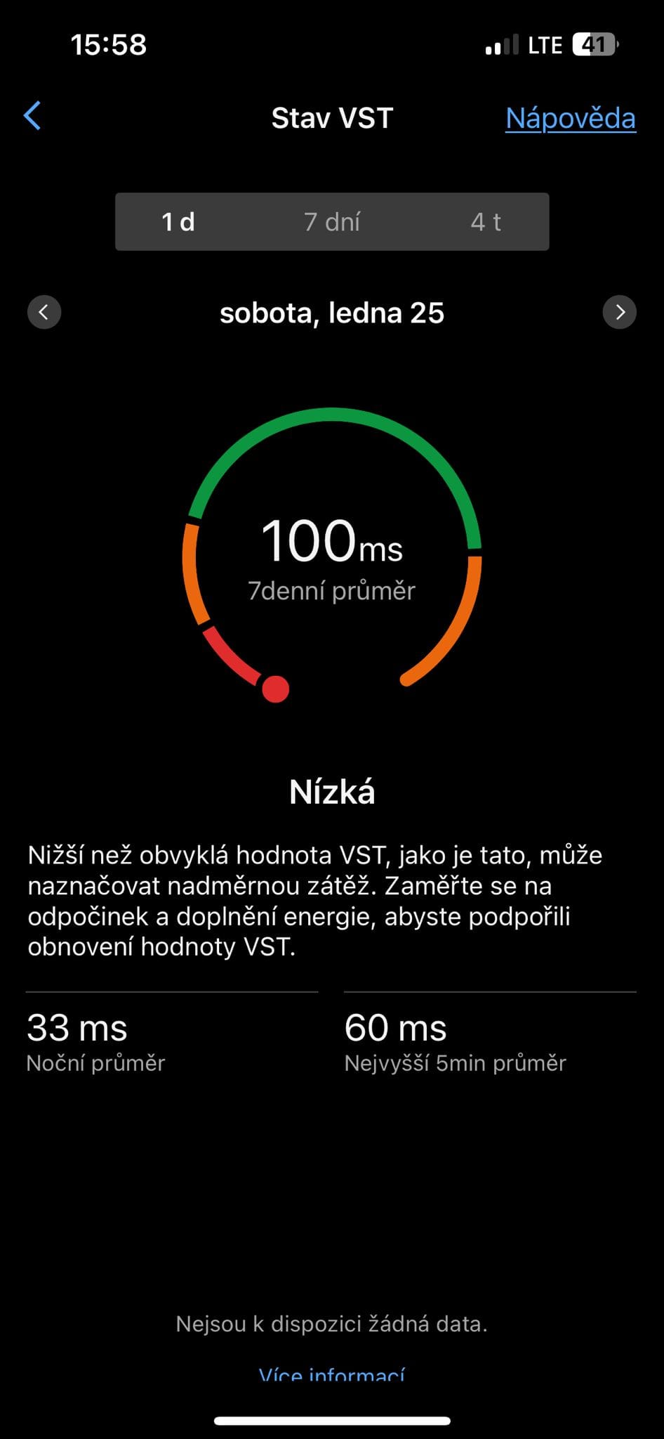 - Moje běžné noční průměrné VST: 110–130 ms