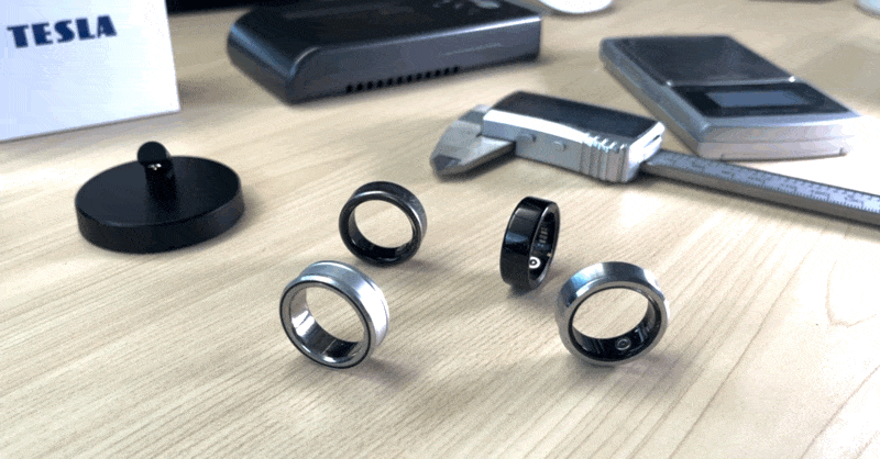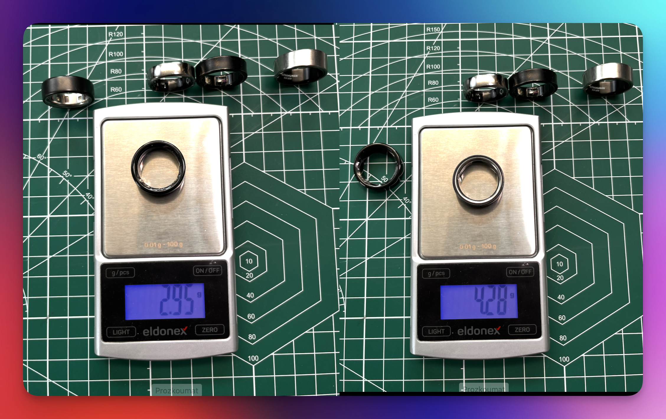 TESLA prsten je dle výrobce vyroben ze slitiny titanu. Tomu odpovídá i váha, která je skutečně nízká, ve velikosti 9️⃣ se vejde do 3 g. Oura naproti tomu například má přes 4 g.