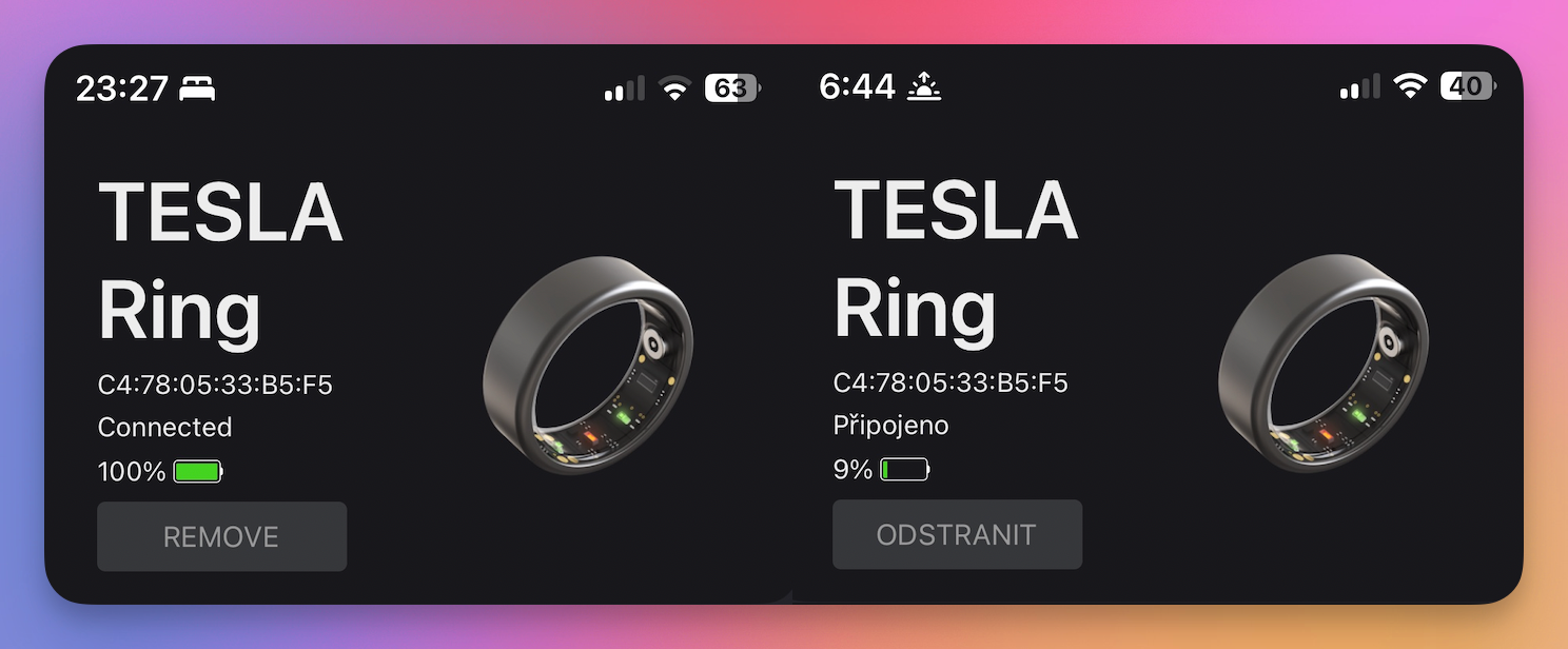 Aplikace TESLA Ring je dostupná jak pro iOS, tak Android. S prstenem komunikuje prostřednictvím Bluetooth.