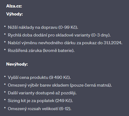 Ostatní aspekty pořízení si každý musí promyslet sám. A nebo Vám je může pomoci sesumírovat chatGPT: