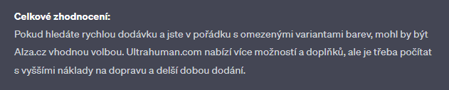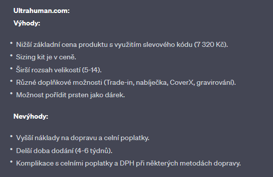 Zhodnocení ChatGPT, jen dodám, že výsledku vyjde Ultrahuman.com levněji