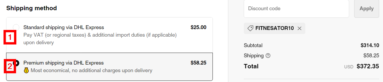 | Náklady na transfer | [1] STANDARD DHL | [2] PREMIUM DHL |