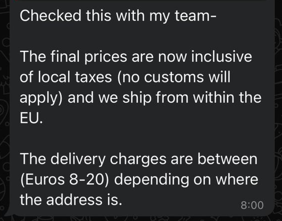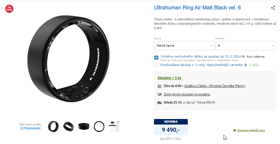 Zároveň se Ultrahuman AIR zdražil, nicméně to pořád vychází podobně (cca 8900 Kč), právě díky "úspoře" za DHL PREMIUM (nebo za případné placení dodatečného cla).