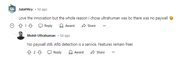 Tyto dvě PP jsou z kategorie "Partnerské", tzn. že na jejich vývoji se podílela externí strana. A jsou (tedy) placené. Kolik placených funkcí musí Ultrahuman tým našlapovat velmi obezřetně, protože to asociuje předplatné a to je dráždivá záležitost v rámci chytrých prstenů 🚩. Jeden z hlavních představitelů UH – Mohit Kumar, celou věc vysvětluje tak, že jde o službu. Ono totiž zavádějí PP vyvolalo na diskuzních fórech jistou (neoprávněnou) paniku...